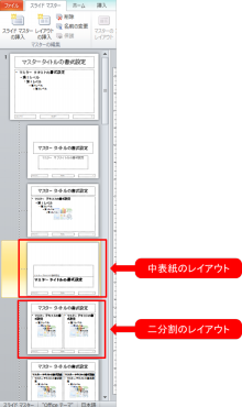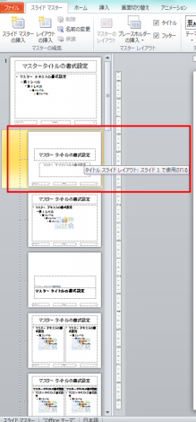 この、「タイトルスライド レイアウト」という子マスタが