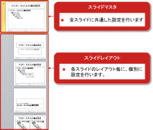つまり、スライド全体を通して表示させたいモノを親マスタに設定する事により